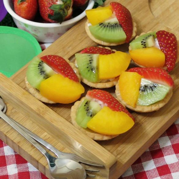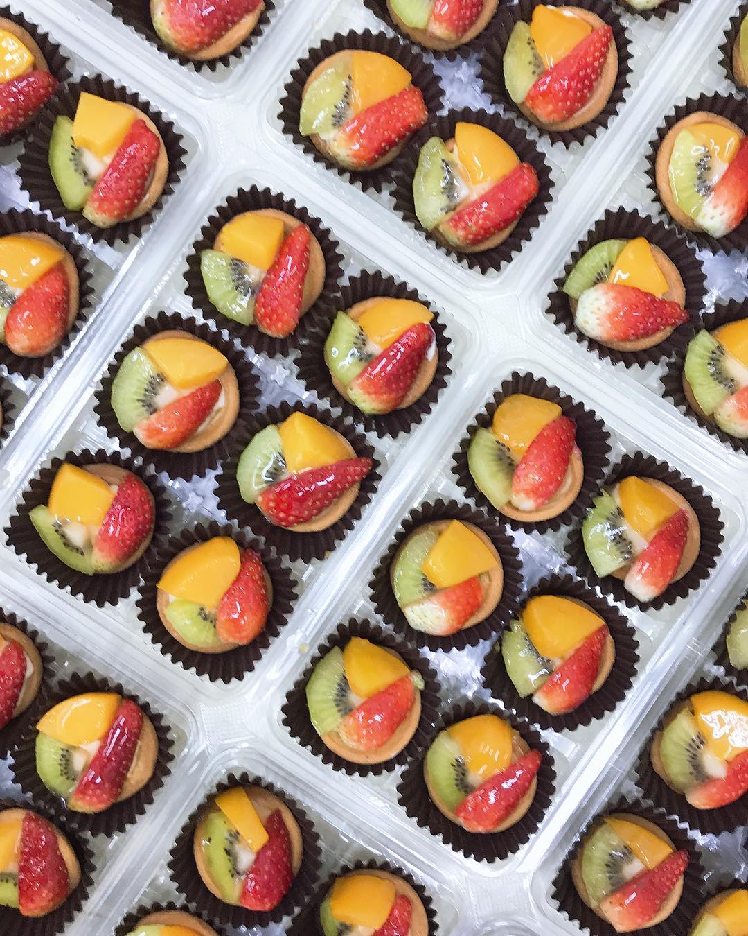 Beautiful, colourful assortment that will make a stunning addition to any functions. Filled with fresh custard cream and topped with kiwi, peach and strawberry slices. Let the natural sweetness of the fresh fruits overwhelm your taste buds.